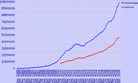 A 1 de noviembre de 2006 sus estadísticas indican la existencia de casi 101,5 millones de sitios web, tres millones y medio más que un mes antes y más del doble que en mayo de 2004, cuando los cálculos indicaban que existían 50 millones de sitios web.